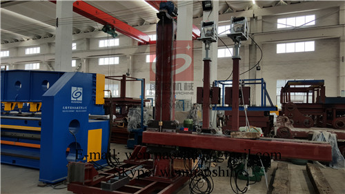 Για τη σφιχτότερη συγκόλληση των εσωτερικών διαφραγμάτων box-beam, υπάρχει διαστημικό αριστερό μπροστά από τη συγκόλληση μεταξύ των διαφραγμάτων και box-beam κατά τη διάρκεια της συνέλευσης των διαφραγμάτων. Αρχικά ανυψώστε το box-beam μετα CO2 πίσω-που ενώνει στενά στο πλαίσιο αυτής της μηχανής, κατόπιν η electro-slag δύναμη συγκόλλησης που κρεμιέται στο βραχίονα θα εκτελέσει την κάθετη electro-slag συγκόλληση στη precut τρύπα του κομματιού προς κατεργασία. Το πλαίσιο στήλη-βραχιόνων μπορεί να ταξιδεψει κατά βούληση κατά μήκος κατά μήκος της κατεύθυνσης του κομματιού προς κατεργασία.